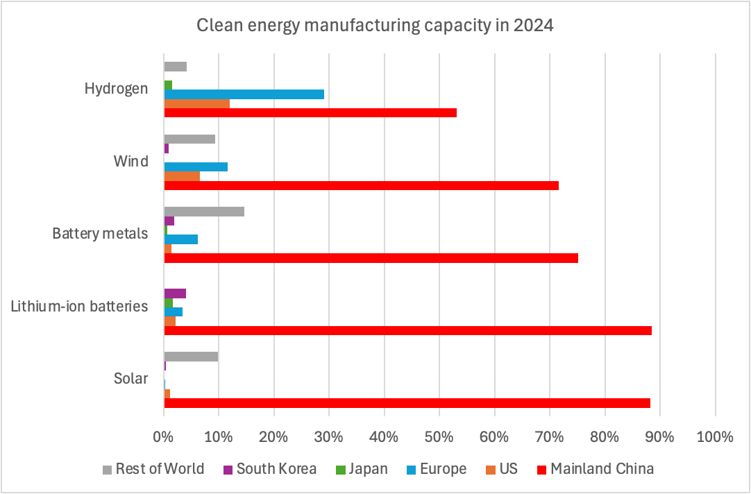 Figure 2: Clean energy manufacturing capacity as share of global total by location, 2024
