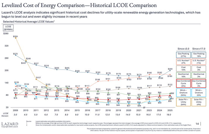 Figure 3: Levelised cost of energy (LCOE) comparison since 2009