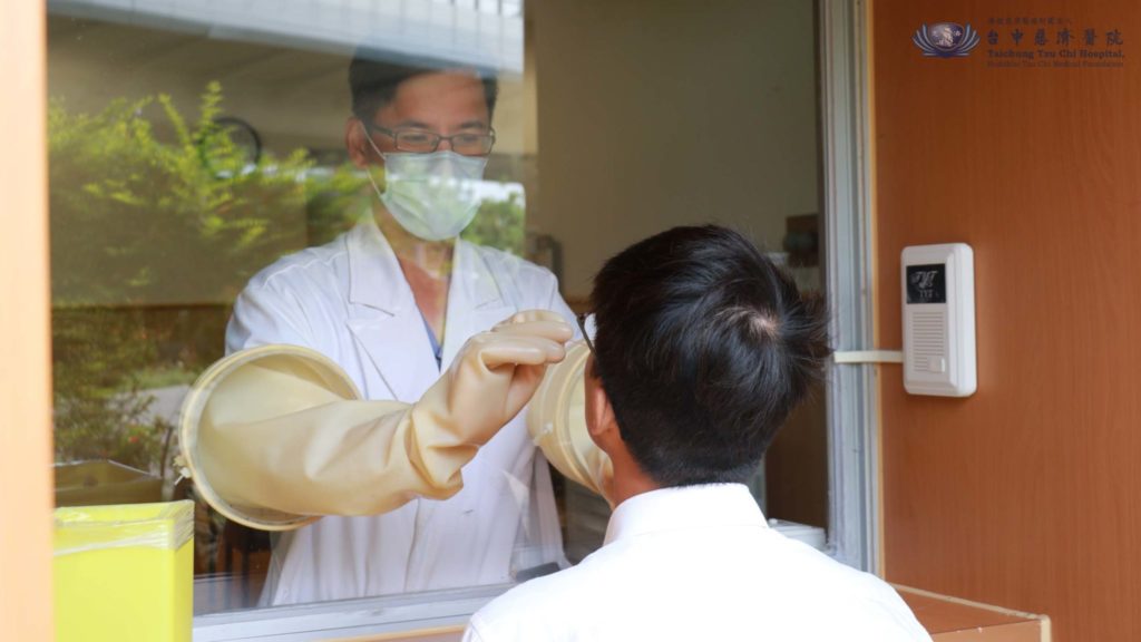 The second example of innovation came from observing healthcare workers going about their day-to-day work activity and specifically, asking female healthcare workers (irrespective of seniority) what can be done to support their work with physical comfort. This project commenced before the outbreak of COVID-19, but has been accelerated during the pandemic. Collaborating with an inter-departmental team at a hospital in Taiwan, we implemented a sealed window barrier featuring a pair of gloves that allows clinicians (nurses and doctors) to perform nasal swab tests with less PPE. This helps tackle the shortage of PPE and reduced 45-59% of healthcare waste per COVID-19 testing in the hospital.