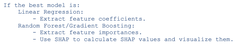 - Feature importance: Extract feature importance scores based on the model type.