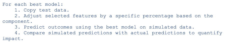- Simulation results: Predicted impact of feature adjustments on target variables.