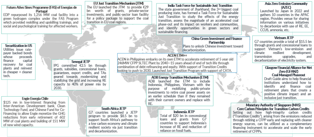 In emerging economies, particularly across Asia, where most of the new additions of CFPPs have taken place over the past 15 years,3 several initiatives have been launched to support the early phase-down of CFPPs:
