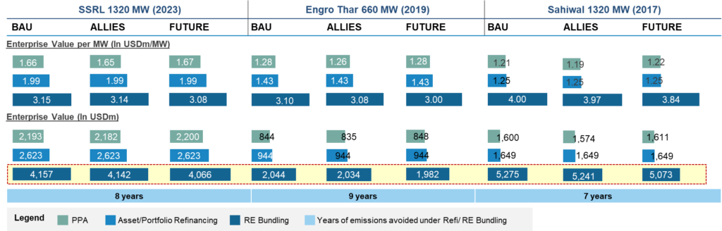 - For all six plants in Vietnam and Pakistan, our modelling showed an increase in enterprise value with Asset/Portfolio Refinancing through early retirement;