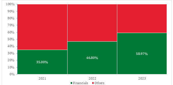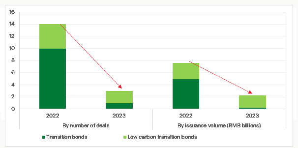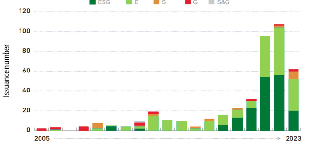 - Transition finance experienced a 38.7 per cent decrease in volume, primarily due to unclear rules regarding fund utilisation. This lack of clarity has posed challenges for transition bonds, particularly in navigating market interest rates.