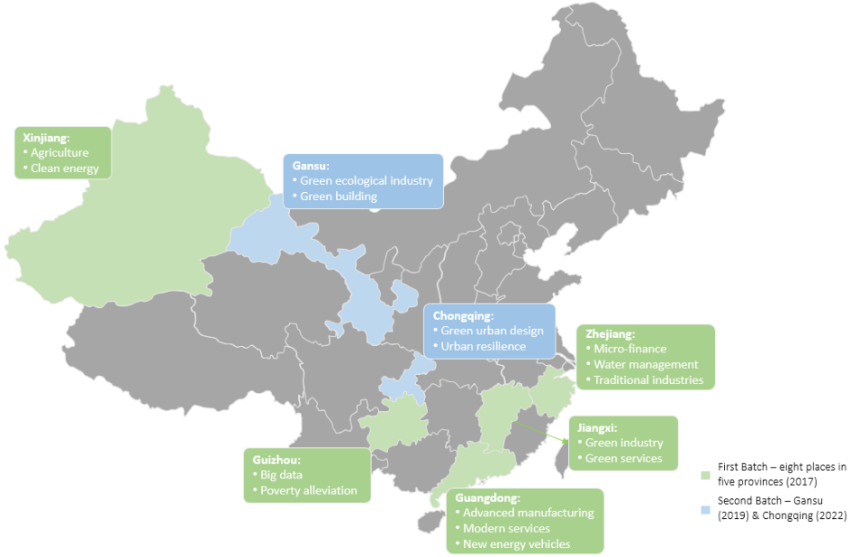 Meanwhile, on sub-national level, local green finance pilot zones (have been initiated to explore replicable and scalable green finance practices (Green Finance Reform and Innovation Pilot Zone -绿色金融改革创新试验区 since 2017, and Climate Investment and Financing Pilot – 气候投融资试点 since 2022).