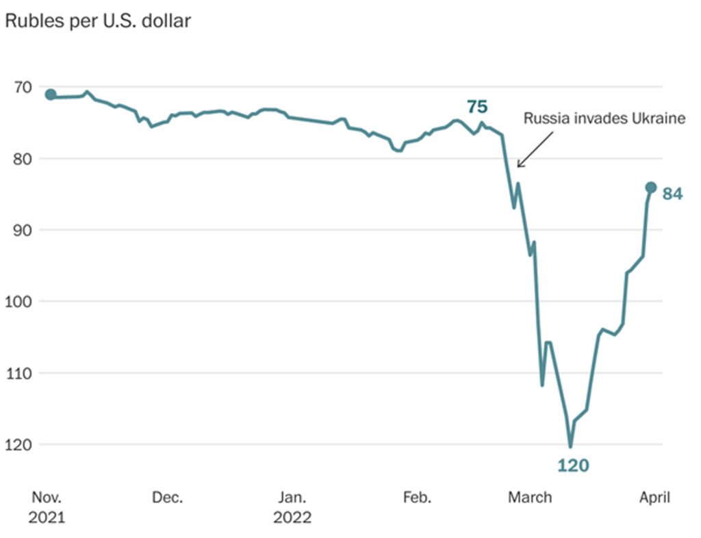 Figure 2: Official ruble exchange rate recovers after initial plunge