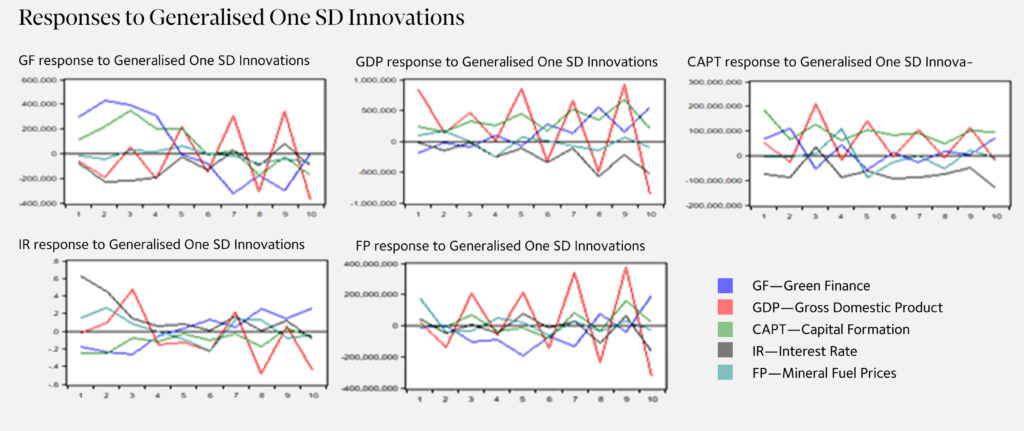 Taking into account a long-term relationship, mineral fuel price moves negatively towards green finance or investment in renewable energy. That is, the increase in mineral fuel prices does not necessarily stir the demand for green finance or investment in renewable energy in the long run.