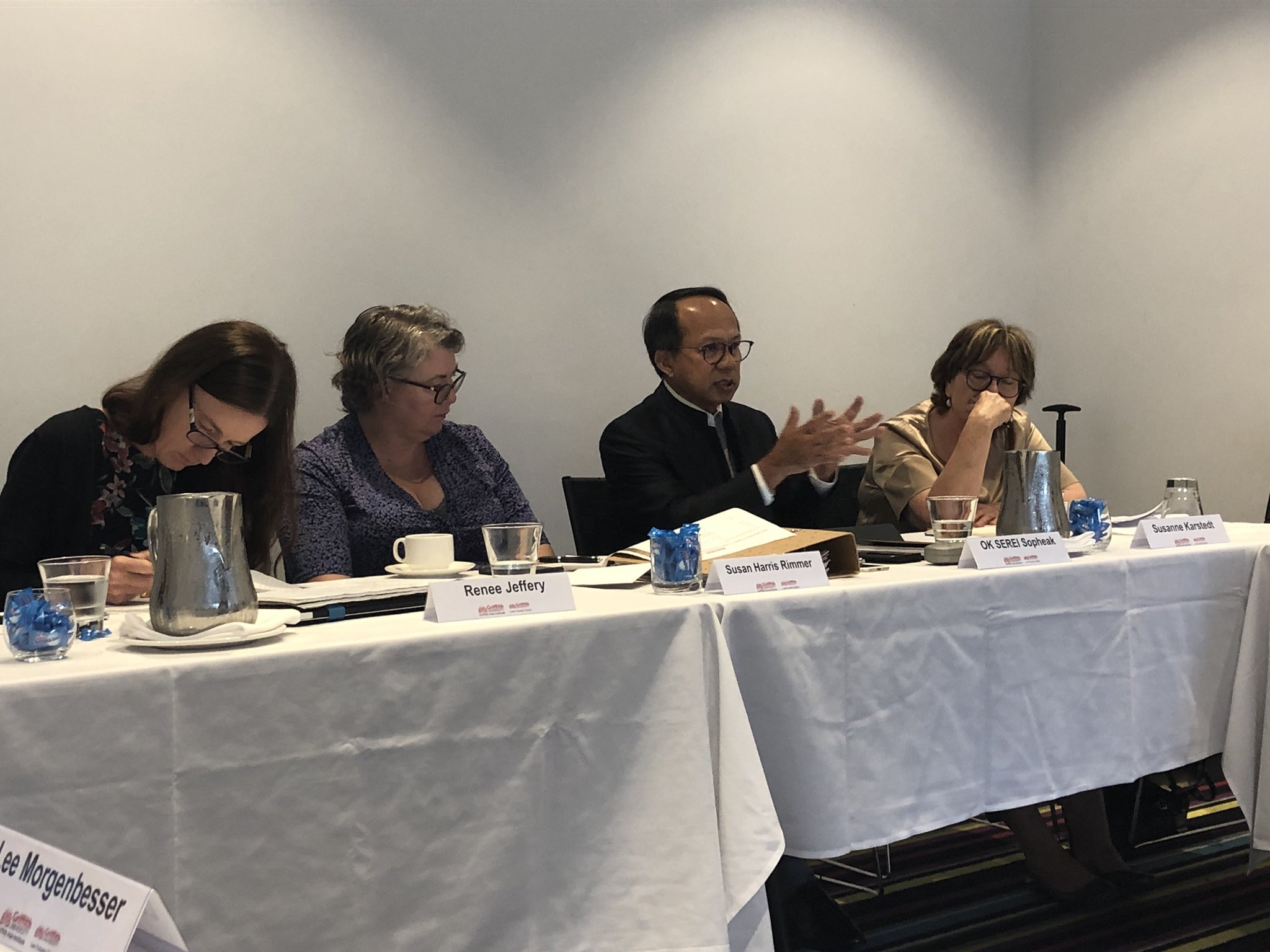 The format for the roundtable involved participants, including HDR students, early-career and more senior researchers, sharing their current work-in-progress. In the afternoon a distinguished panel critically discussed the idea and reality of legacies after mass conflict and transitional justice. The panel was chaired by the LFC’s Susan Harris Rimmer of Griffith Law School, with the participation of Mr. OK SEREI Sopheak, the Chair of Transparency International Cambodia; Professor Renée Jeffery, Griffith Asia Institute; and Professor Susanne Karstedt, School of Criminology and Criminal Justice.