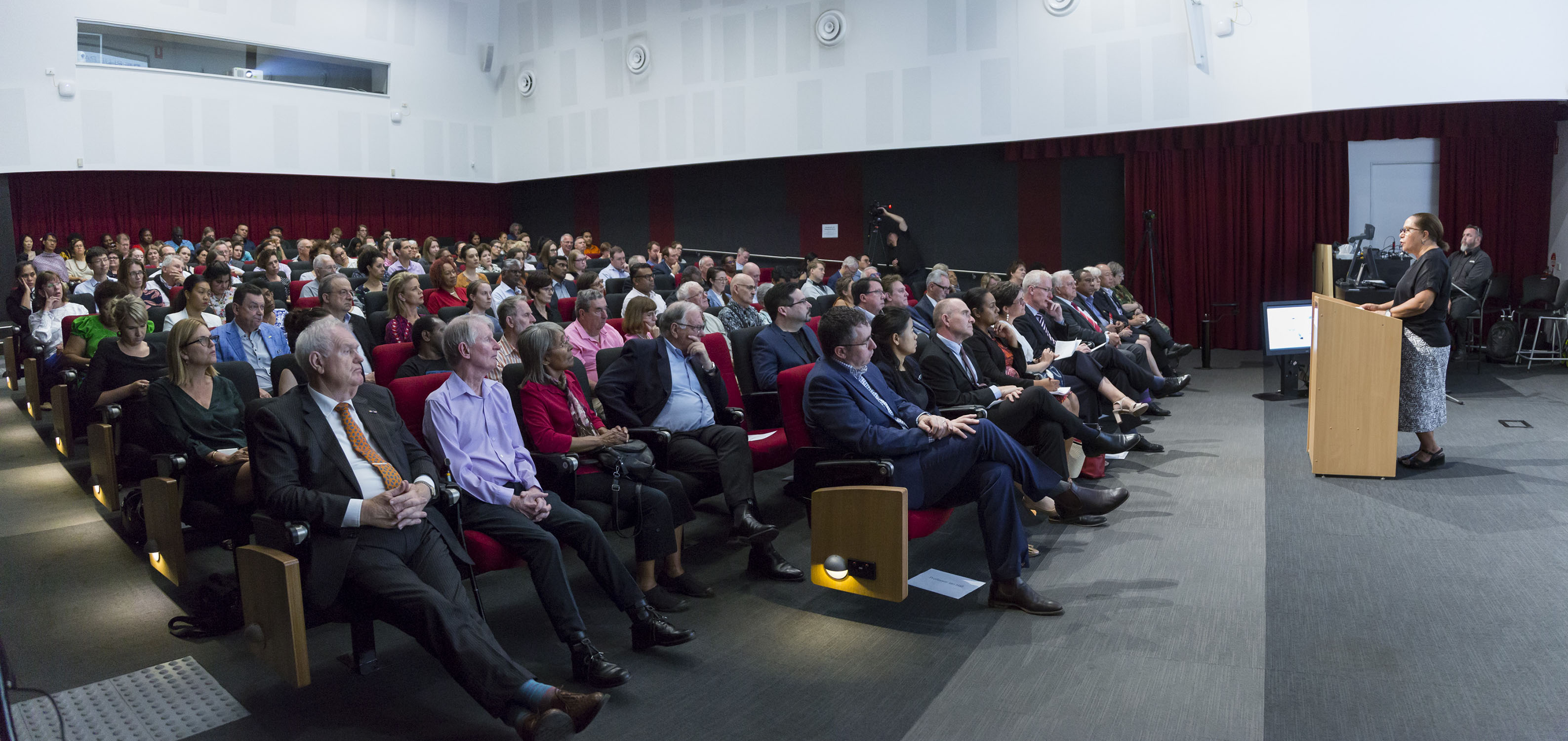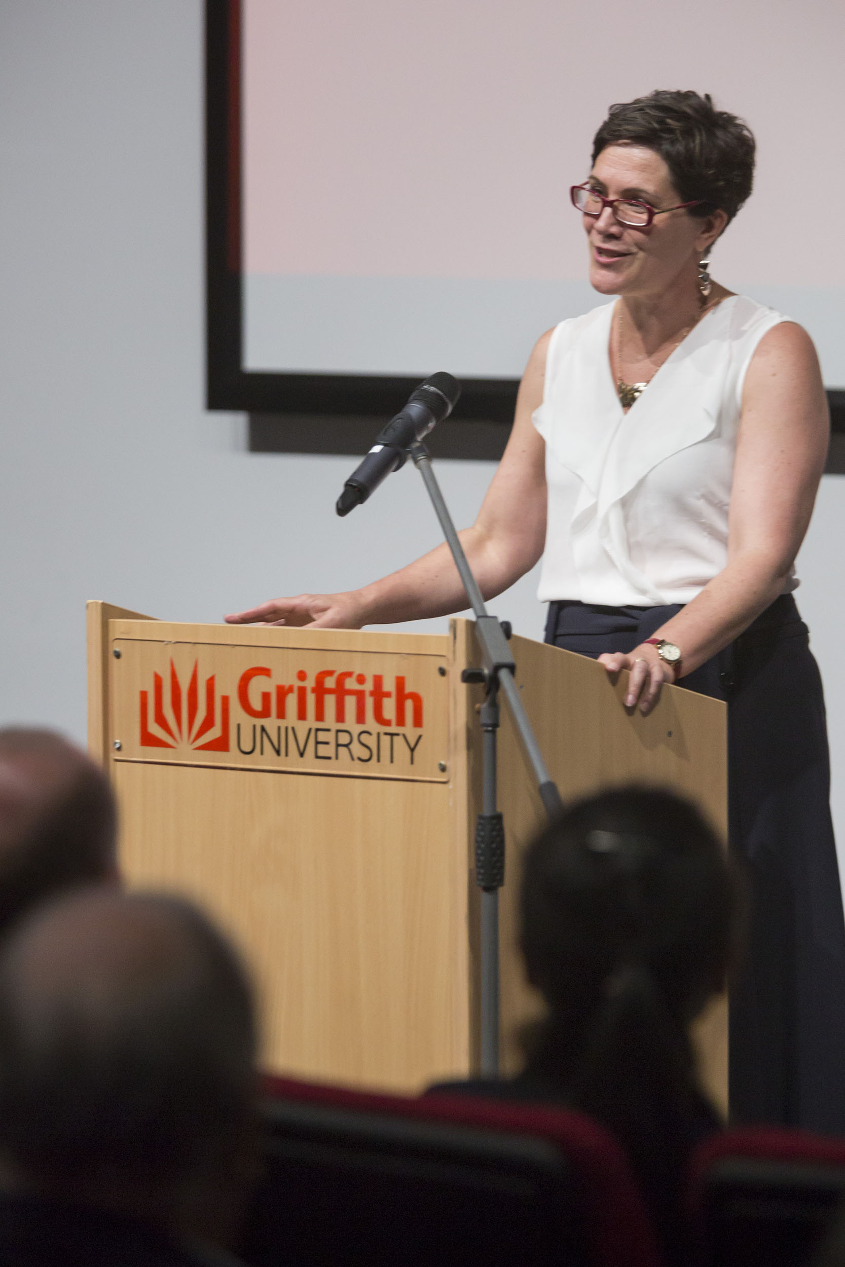 Professor Caitlin Byrne welcomes a full house to the Griffith Asia Lecture