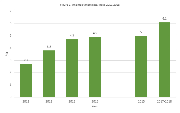 The Indian government recently got mired in controversy when it apparently tried to suppress a report from the National Sample Survey Office (NSSO) that the country’s national unemployment reached 6.1 per cent – which was the highest recorded since 1972-73. The youth unemployment rate now stands at 16 per cent. The labour force participation rate has either stagnated or declined slightly.