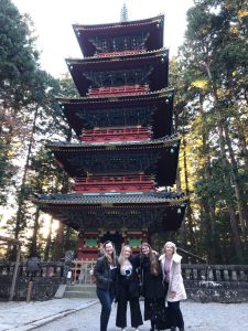 (L to R) Global Interns: Felicity Beikoff, Laura Kyle, Rochelle Harding and Carissa McCann at the ‘Five Storied Pagoda from Toshogu Shrine’ in Nikko. (Photo supplied)