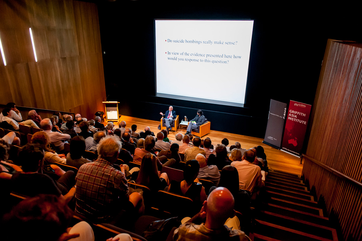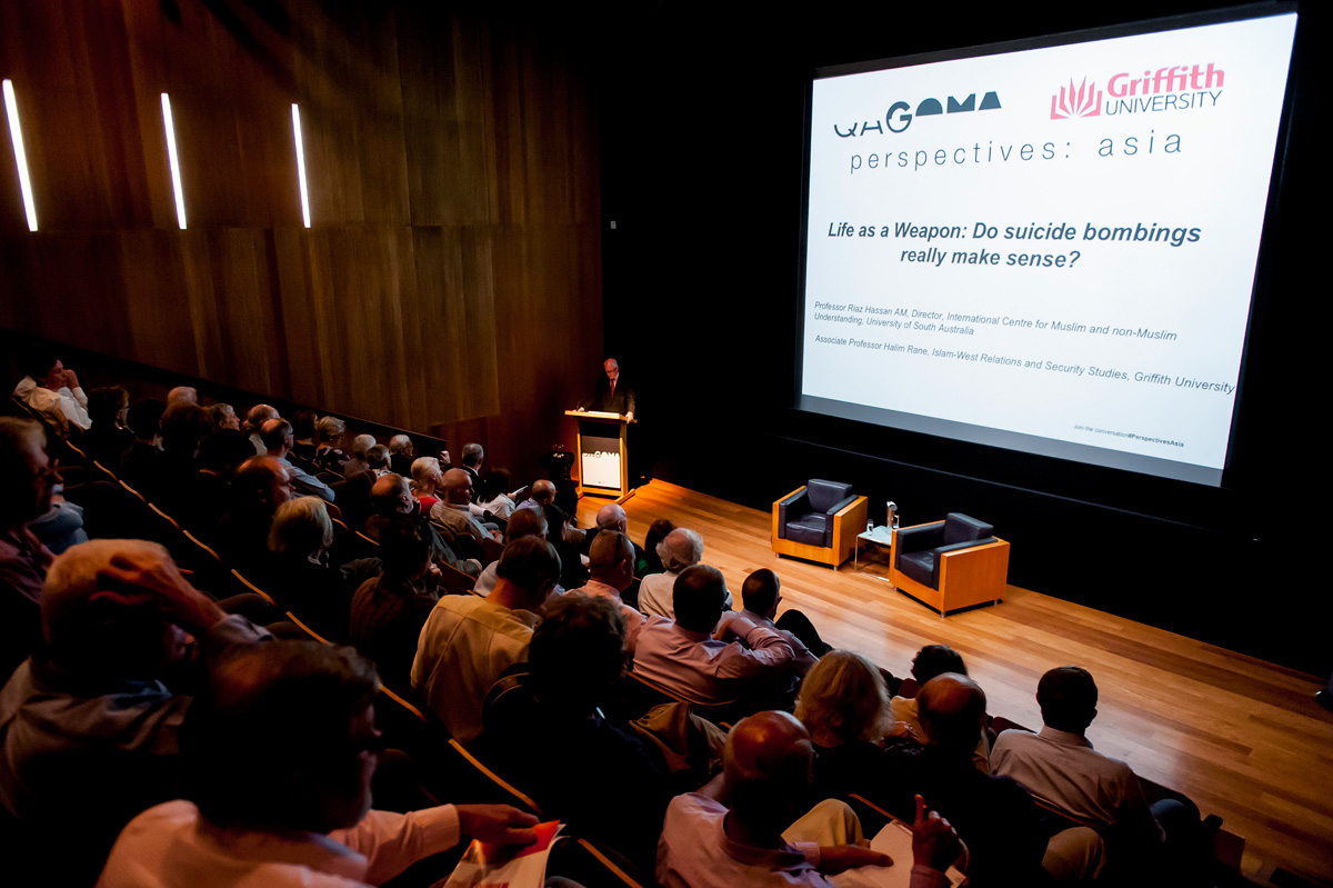 The Perspectives:Asia seminar – Life as a Weapon: Do suicide bombings really make sense? was held at Brisbane’s Gallery of Modern Art on 5 November, 2015. During the seminar, Professor Riaz Hassan AM, Director of the International Centre for Muslim and non-Muslim Understanding, University of South Australia addressed the common perceptions and understandings of suicide bombings and their perpetrators, while examining a cocktail of motivations including political success, liberation of the homeland, personal redemption or honour, refusal to accept subjugation, revenge, anxiety, and defiance.