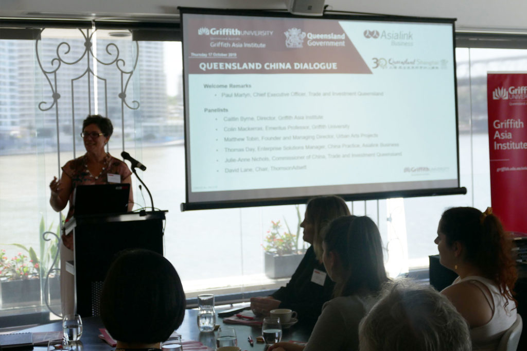 Professor Caitlin Byrne (GAI) chaired a panel of experts, including Emeritus Professor Colin Mackerras (Griffith Univeristy), Julie-Anne Nichols (Queensland Trade and Investment Commissioner to China), Thomas Day (Enterprise Solutions Manager, China Practice AsiaLink Business), David Lane (Chair, ThompsonAdsett) and Matthew Tobin (Founder and Managing Director, UAP), to examine the important roles that business, education and cultural networks play in encouraging cooperation and collaboration between Queensland and China.