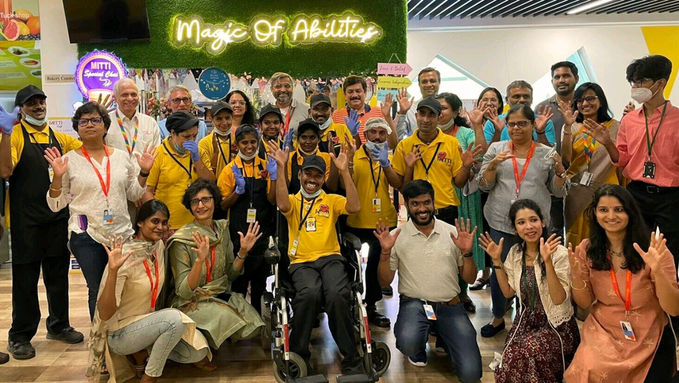 Founded by Alina Alam (front row, second from right), Mitti Cafe runs a chain of cafes in India managed by persons with disabilities, many of whom come from low-income communities. (Image: Mitti CafĆ© Facebook)