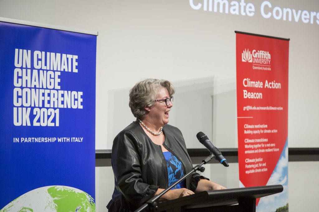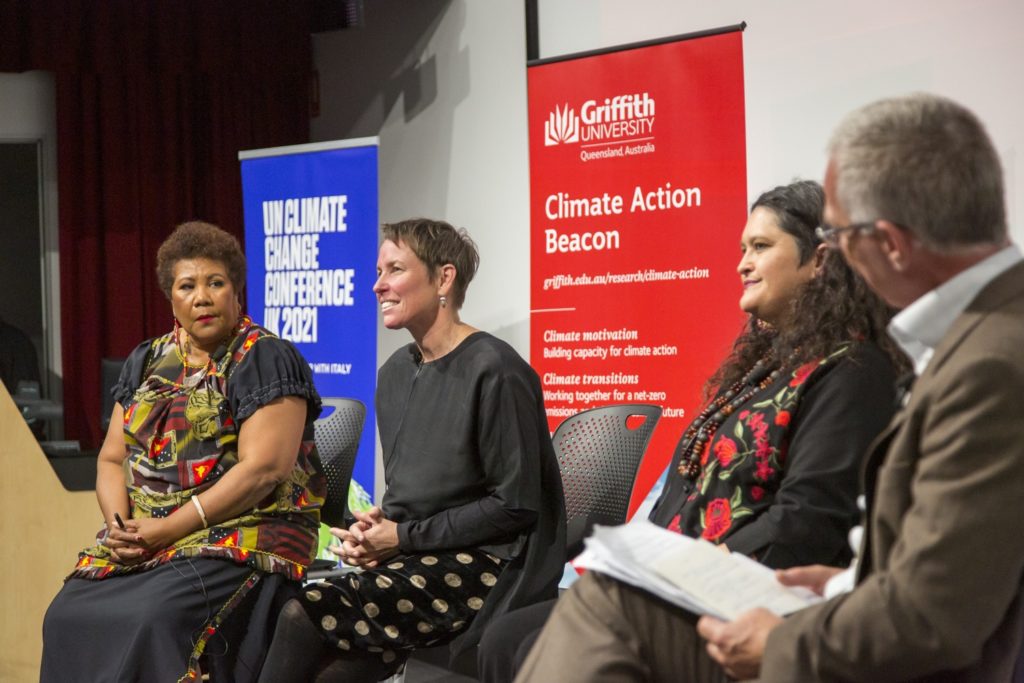 Held in acknowledgement of International Women’s Day (IWD) 2021, the event aligned to the Griffith University Climate Action Beacon (Climate Justice / Climate Diplomacy) focal areas, drawing attention to key themes facing women and communities in leading on climate action, including in the lead-up to COP26 (to be hosted by the UK in November).