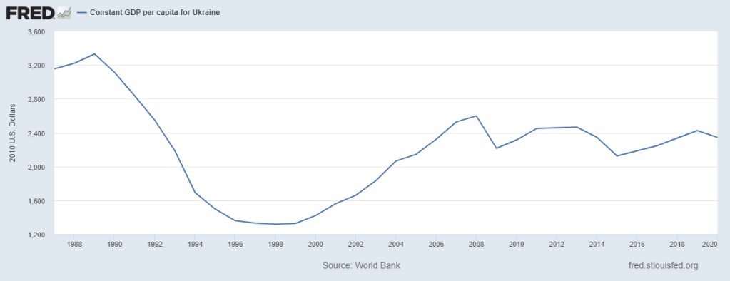 Stanford historian Norman Naimark proclaims that Ukraine was a ‘thriving young democracy’ prior to the Russian invasion. He qualifies this proposition by stating that there were ‘… lots of bumps on the road and problems with corruption’. The insufficiently critical reader might discount such fleeting caveats, but one could argue that they undermine the notion of Ukraine as a thriving democracy. Indeed, a well-established view is that the dysfunctional nature of Ukraine’s governance has led to widespread corruption and mediocre economic performance because of the inability of policymakers to implement and sustain much-needed growth-promoting reforms.